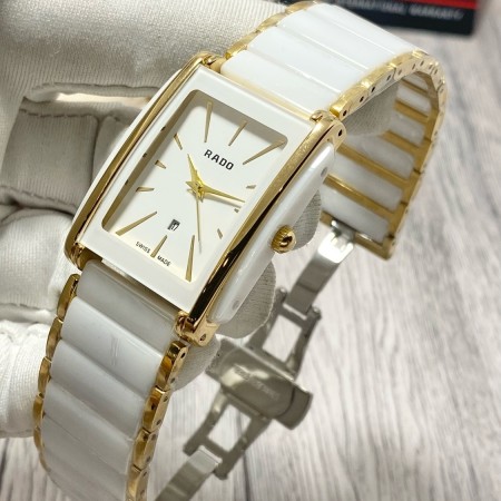 RADO Integral Quartz White Dial Gold Plated Ceramic Mens Watch